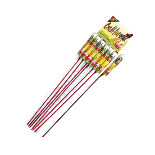 Paquete de 6 cohetes, que realizan silbidos y aperturas de cracketeo blanco.